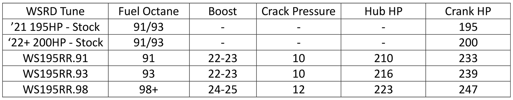 ~ WSRD Motec ECU Stock Injector Calibrations: 91 Octane, 93 Octane & 98+ Octane